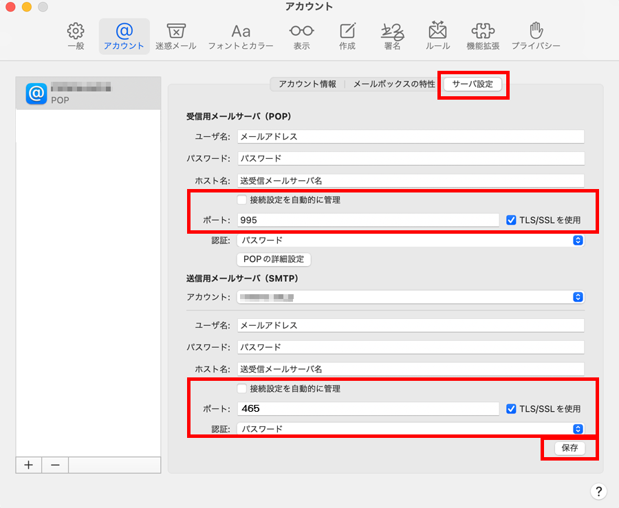 Mac メール 設定方法(mx●.nkansai.ne.jpのメールアドレス) 設定方法