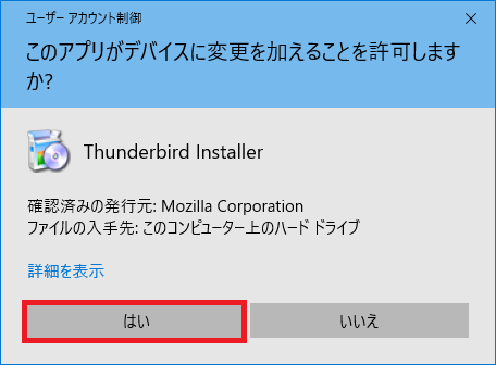 ユーザーアカウント制御の画面が表示される場合は「はい」をクリックします。